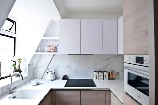 不管你的厨房户型格局是否规整,都可以设计成U型布局,这个布局设计可以最大程度的利用厨房的空间,避免了不规则厨房场地不足的缺陷。