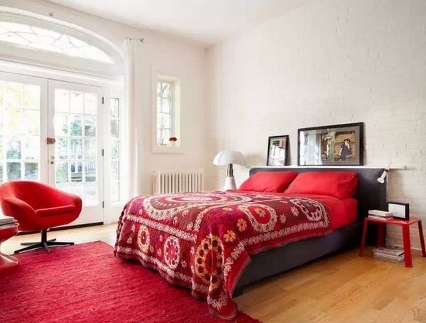 红色的床上用品也能增添喜庆哟。不论是红色的枕套、床单还是被单,均可以勾勒出喜庆的红色线条,让卧室更加抢眼也更有格调。或者,可以在床头柜上摆放一个花瓶,里面插上玫瑰花,也能营造出很棒的新年气息哟。
