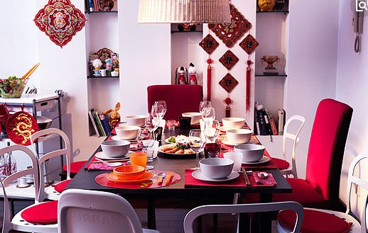 厨房看起来似乎没有什么地方好红的?并不一定哦!微波炉、烤箱上的防尘罩就可以采用红色的单品,打造出一抹简约而不失格调的红色气息,与新春更配哦!另外,也可以考虑配置一整套刀柄是红色的刀具,平日里用起来也不失为点缀心情的利器。